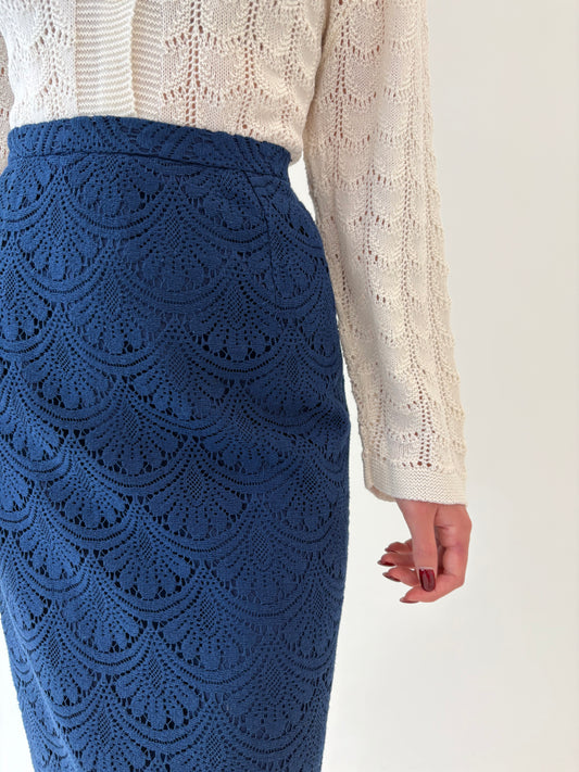 Fustă vintage superbă albastru cerneală din dantelă groasă din mix de lana