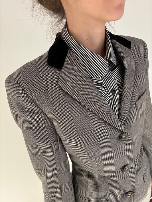 Sacou vintage cambrat italian din lana plină pura pied de coq alb-negru