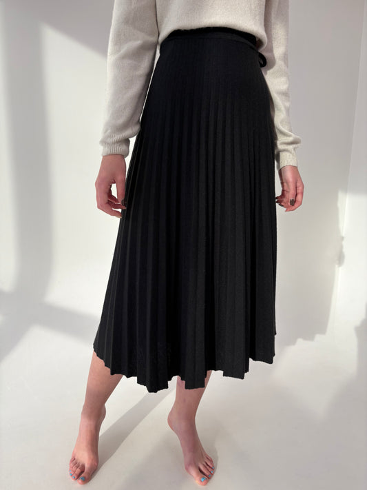 Fustă neagră plisată din tricot extrafina din mix de lana