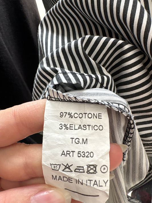 Cămașa italiana în croi elaborat cu funde și dungi negre din poplin de bumbac