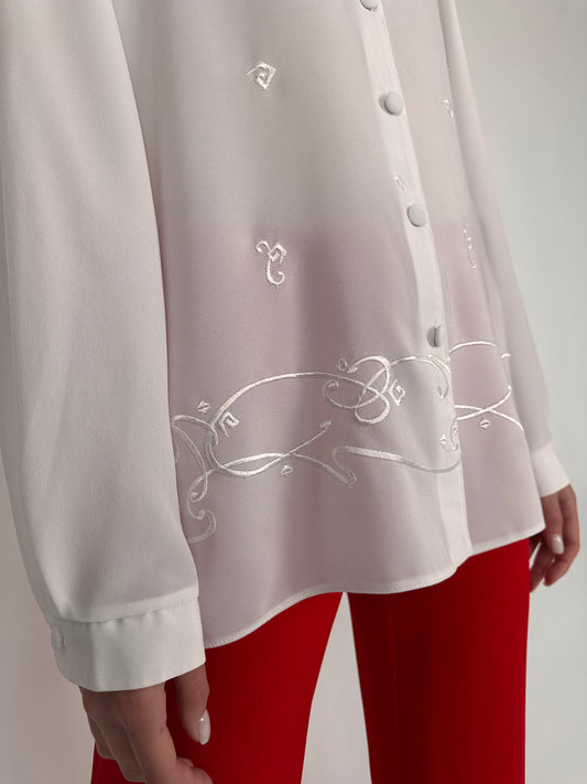 Cămașa din voal opac cu broderie delicată și nasturi îmbrăcați