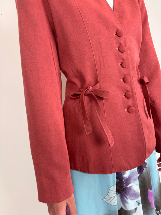 Sacou vintage cambrat cu talie ușor reglabilă din pânză chestnut brown