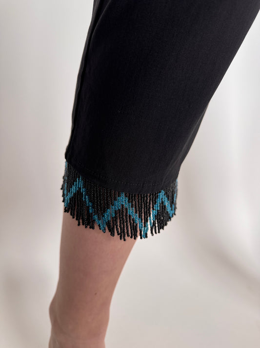Pantaloni vintage cu franjuri din mărgele negri modelatori