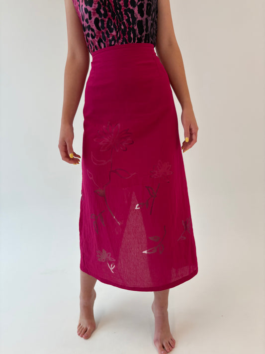 Fustă maxi ciclam cu print inserat transparent din panzica