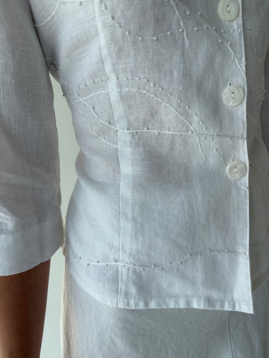 Sacou / Cămașă din in premium ușor cambrata cu aplicații manuale delicate