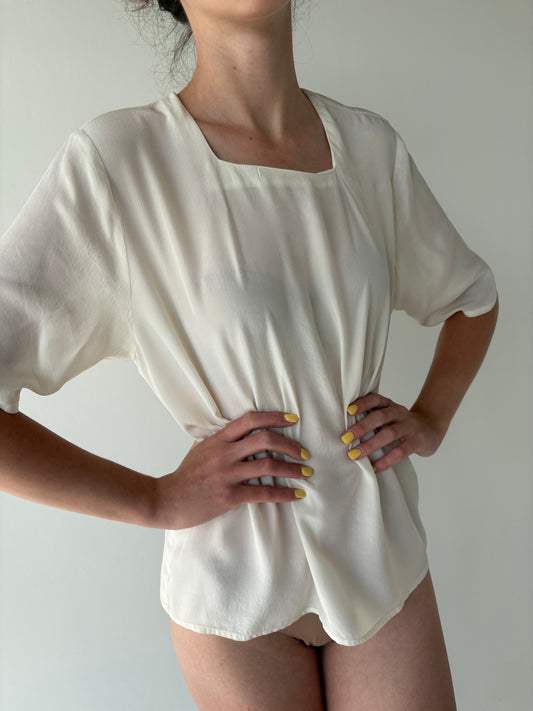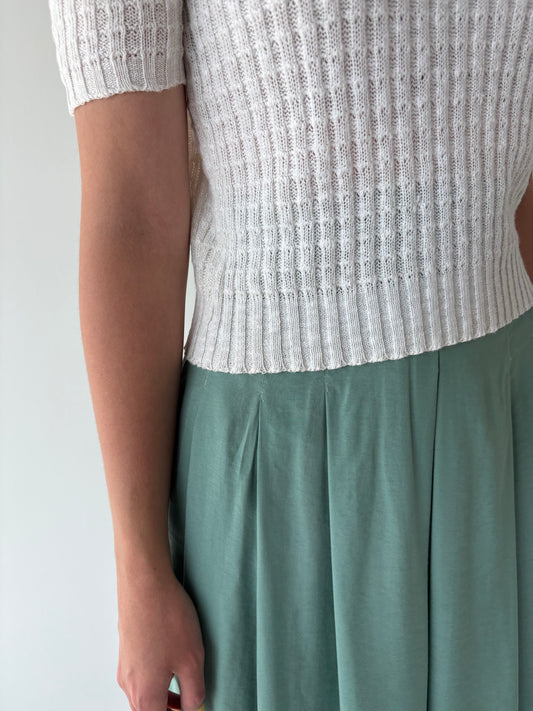 Top vintage din jerse texturat de vară in croi ușor cropped