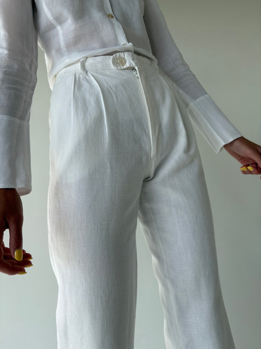 Pantaloni premium italienești cu pense din pânză moale de in și bbc