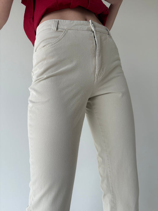 Jeans vintage moale de vară modelator light beige cu talie înaltă
