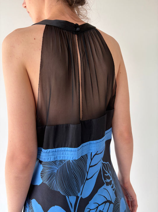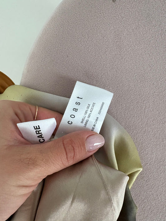 Rochie în nuanțe superbe din mătase naturală grea cu talie ultra înaltă marcată