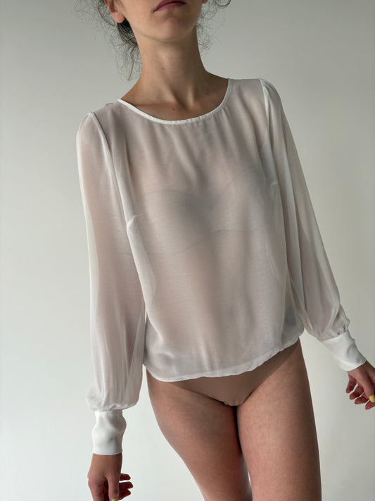 Cămașa din voal cu manșete înalte și decupaj la spate