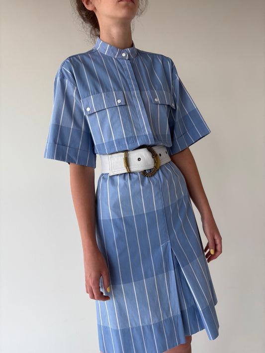 Rochie din poplin de bumbac în croi retro minimalist cu talie marcată