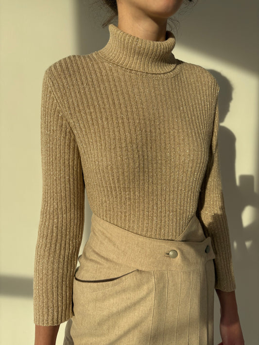 Maleta light nude din lana extrafina cu inserții delicate de lurex light gold
