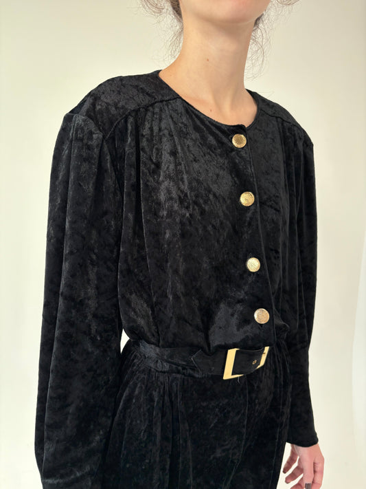 Salopetă vintage de seară din catifea cu talie ultra înaltă reglabilă