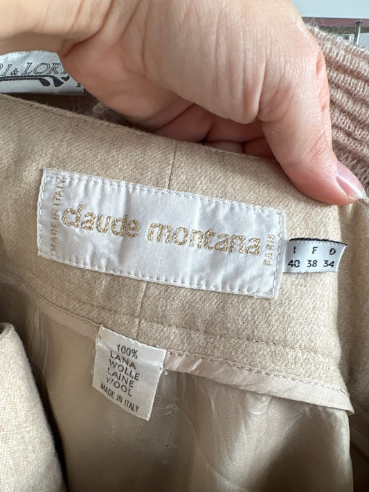 Fustă de designer luxury vintage Claude Montana în croi elaborat