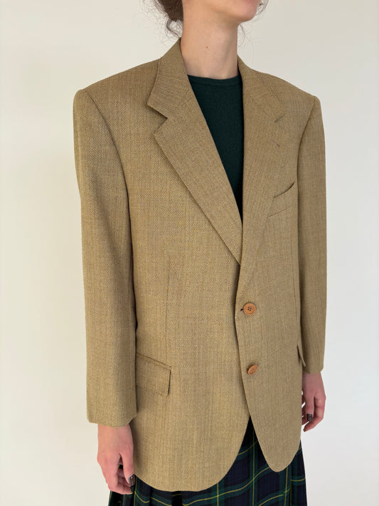 Sacou old vintage anii 70 din stofă structurată de lana și mătase naturală