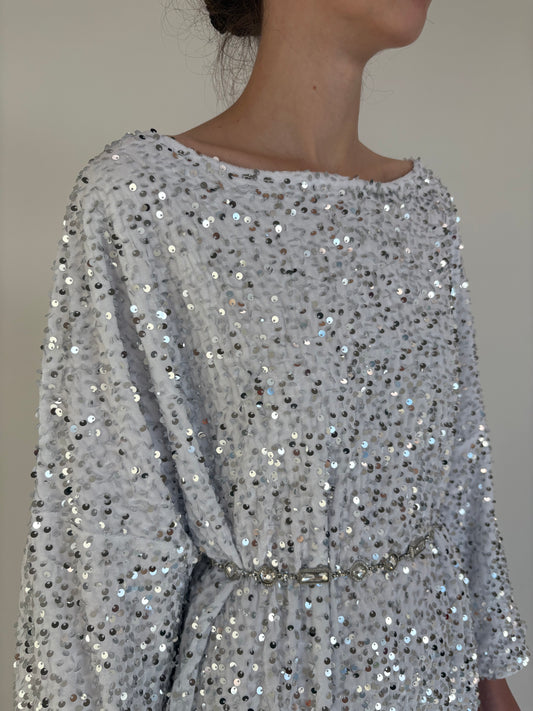 Oversized/ XXLStoc epuizatRochie maxi din catifea extrem de moale cu aplicații din paiete argintii