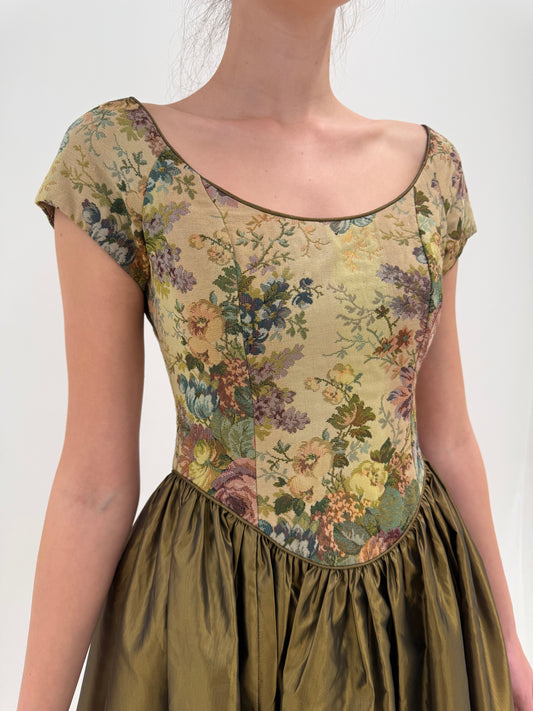Rochie vintage princess cu corset și partea de bust din brocart