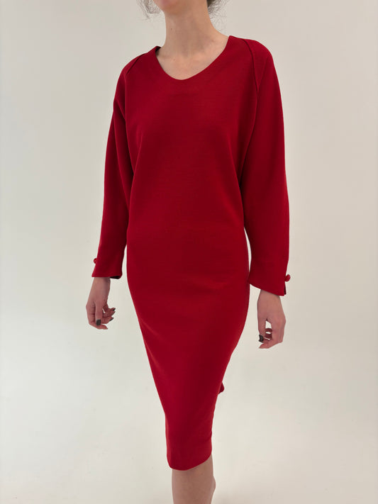 Rochie Old vintage cherry red anii 80 din lana extrafina de la zi la seară