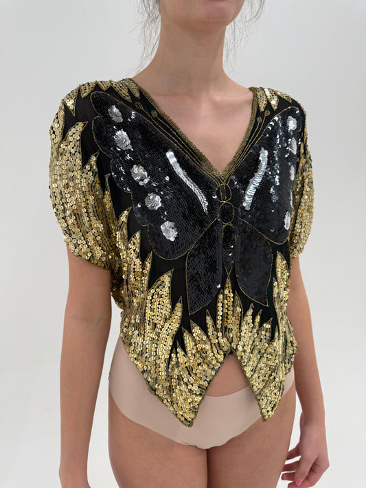 Sacou vintage elegant din jacquard superb auriu antichizat pe negru