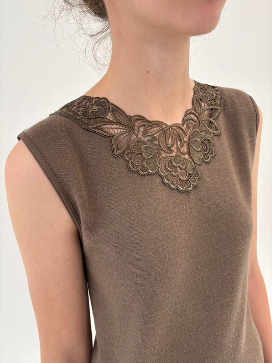 Top cafe au lait italian din mix de lana de lana extrafina