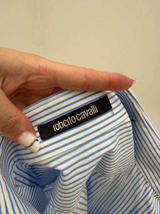 Cămașa Roberto Cavalli în dungi fine albastre și croi actual