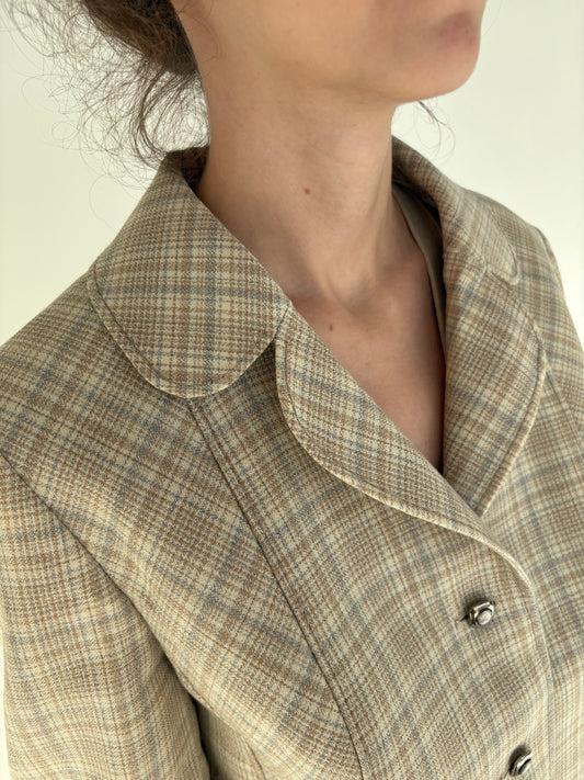 Sacou old vintage anii 70 din lana pura certificată în nuanțe de nude și baby blue