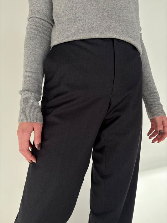 Pantaloni tall Navy cu talie ultra înaltă și pense din lana extrafina