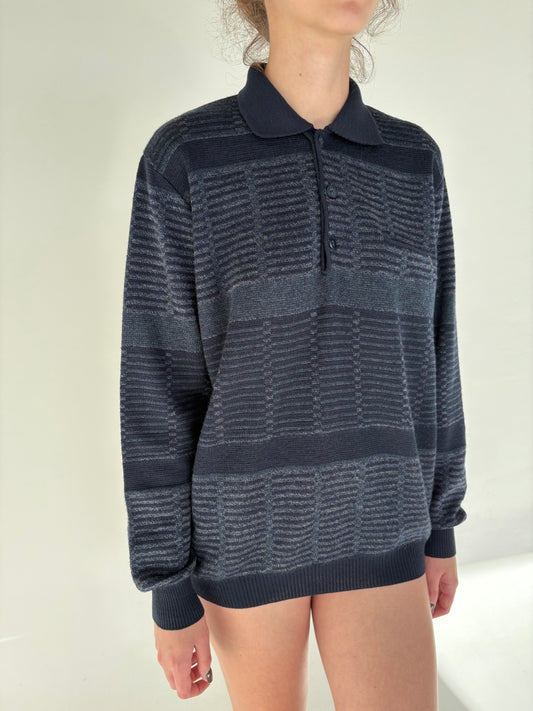 Pulover vintage polo din lana extrafina de gramaj mare și manșete îngustate