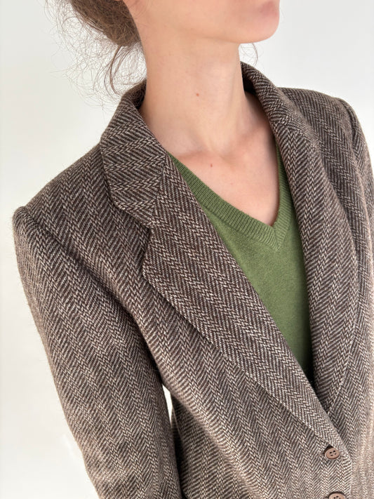 Sacou gros din teeed Chevron de lana în nuanțe neutre