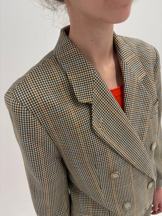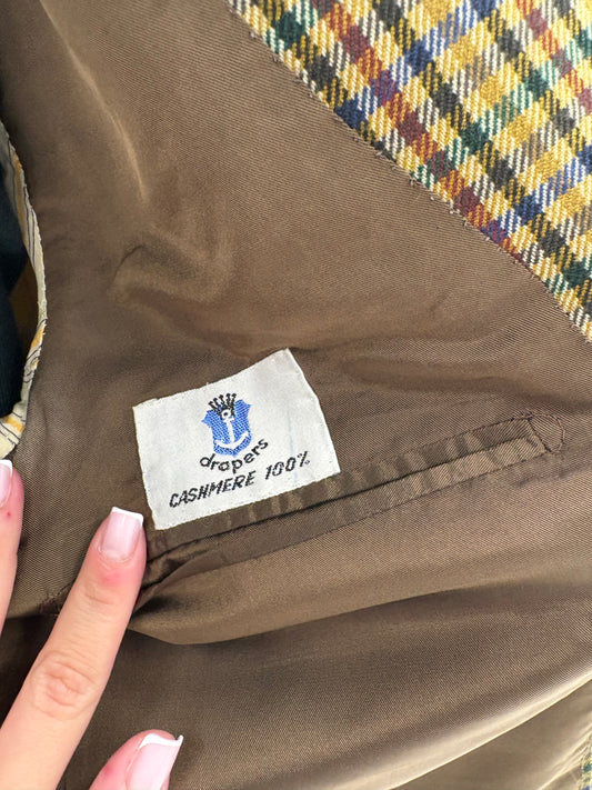 Sacou couture camel italian din stofă 100% cașmir în carouri