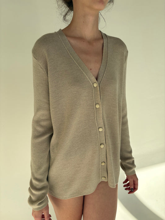 Cardigan nude din lana extrafina de gramaj mare