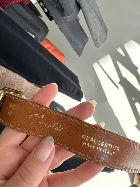 Centura italiană high end din piele naturală cu cusături manuale decorative