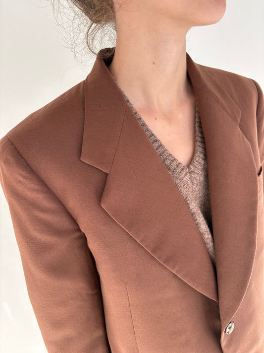 Sacou chocolate brown din lana ușor structurată în croi actual