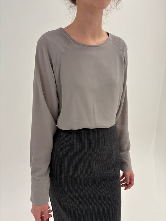 Bluză din mătase naturală silver grai în croi chic minimalist