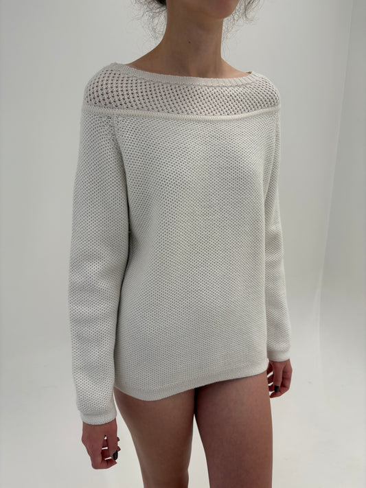 Pulover italian de gramaj mare din lana merino extrafina cu decolteu bărcuță