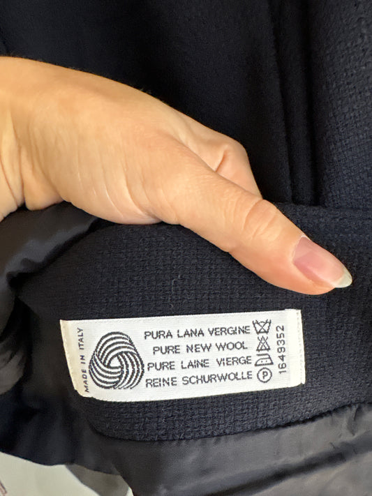 Sacou vinatge Navy blue din stofa plină de cașmir cu lana și emblema brodată
