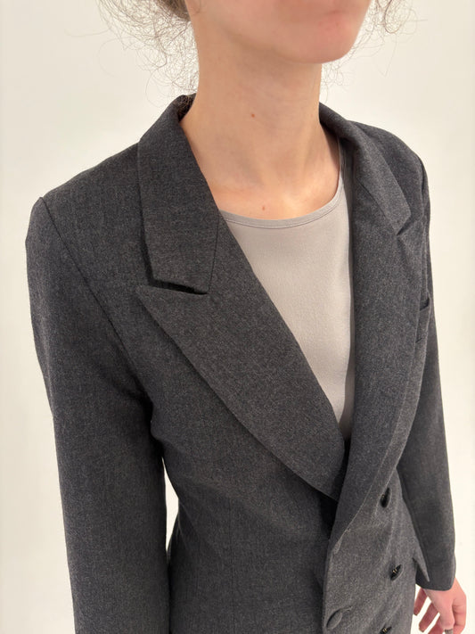Sacou lung cambrat cu revere late din lana extrafina