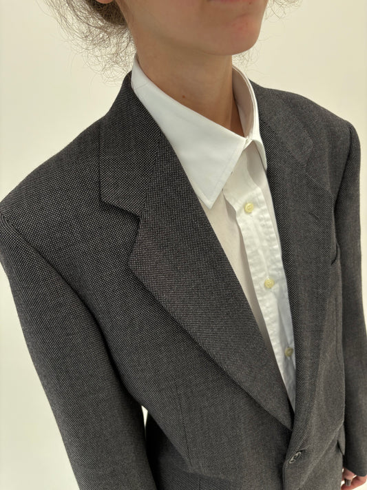 Costum italian din stofă texturată de lana pura certificata alb cu negru