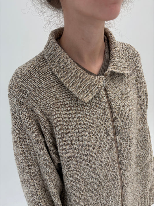 Pulover polo gros în nuanțe de nude cu fermoar din lana plină