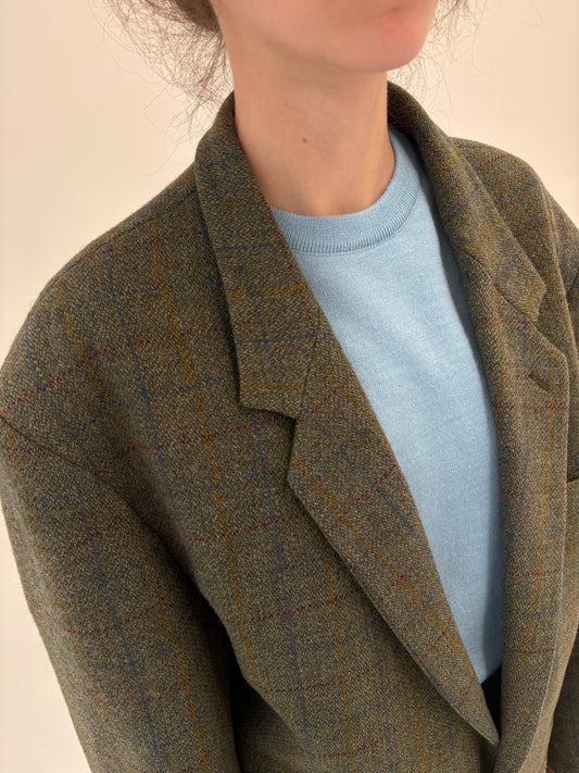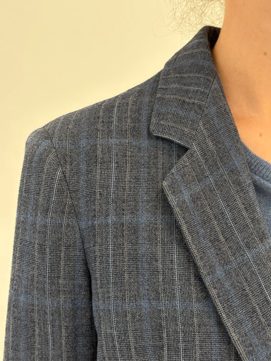Sacou vintage italian jeans blue în carouri din tweed de lana extrafina