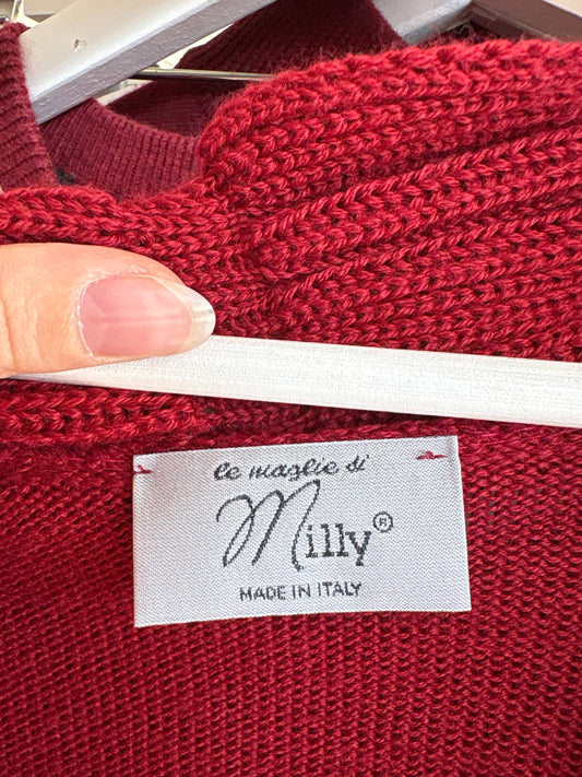 Cardigan cherry red italian cu efect 3D din lana extrafina
