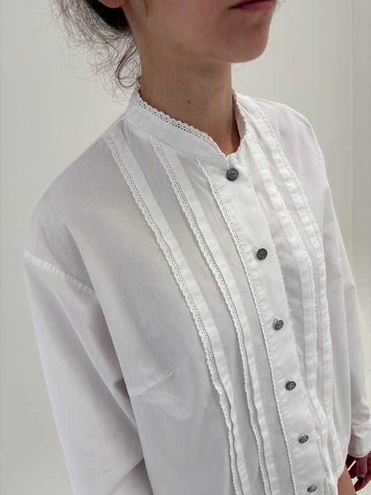 Cămașa vintage din pânză groasă structurată de bumbac cu dantelă macrame