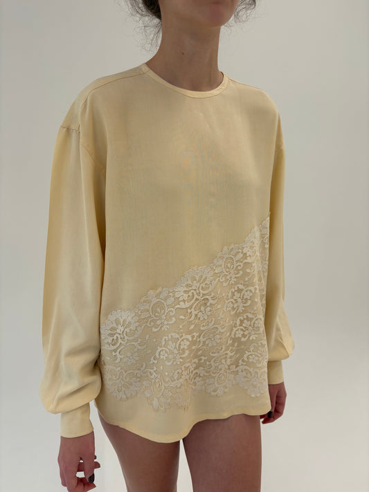 Cămașa din mătase naturală plină butter nude cu dantelă chantily