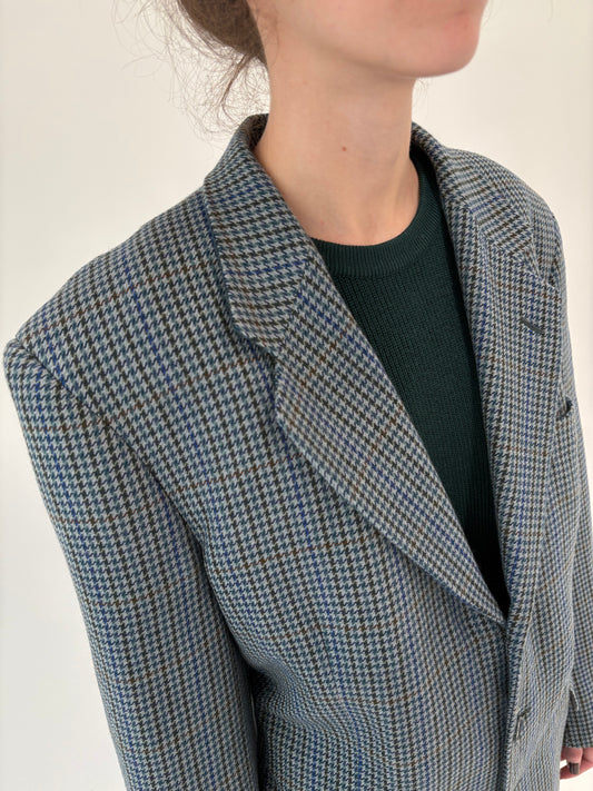 Sacou în carouri pied de coq Jeans blue din tweed moale de lana certificată