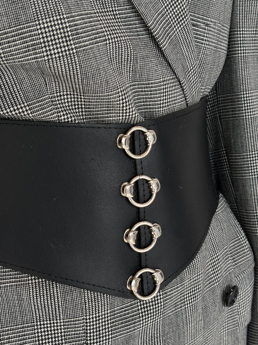 Sacou în carouri pied de coq alb negru din lana extrafina certificată