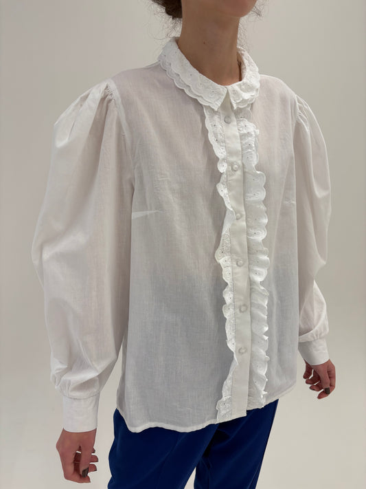 Cămașa vintage cu jabou și mâneci ample cu manșete îngustate