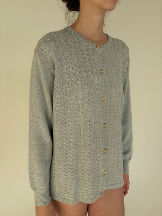 Cardigan cu torsade silver gray din lana merino extrafina de gramaj mare