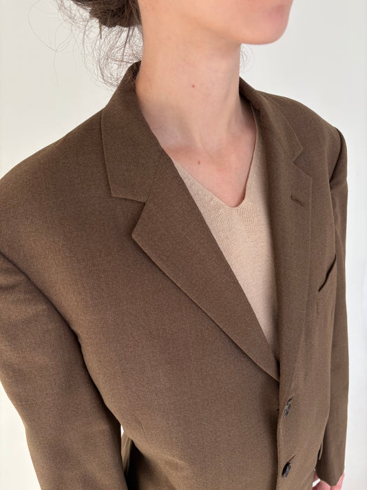 Sacou chocolate brown din lana ușor structurată în croi actual