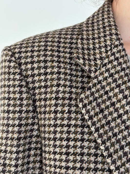 Sacou pied de coq din tweed de lana plină în culori neutre