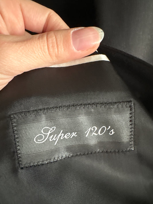 Sacou negru luxury de ocazie din stofă ultra fină super 120’s cu revere satinate